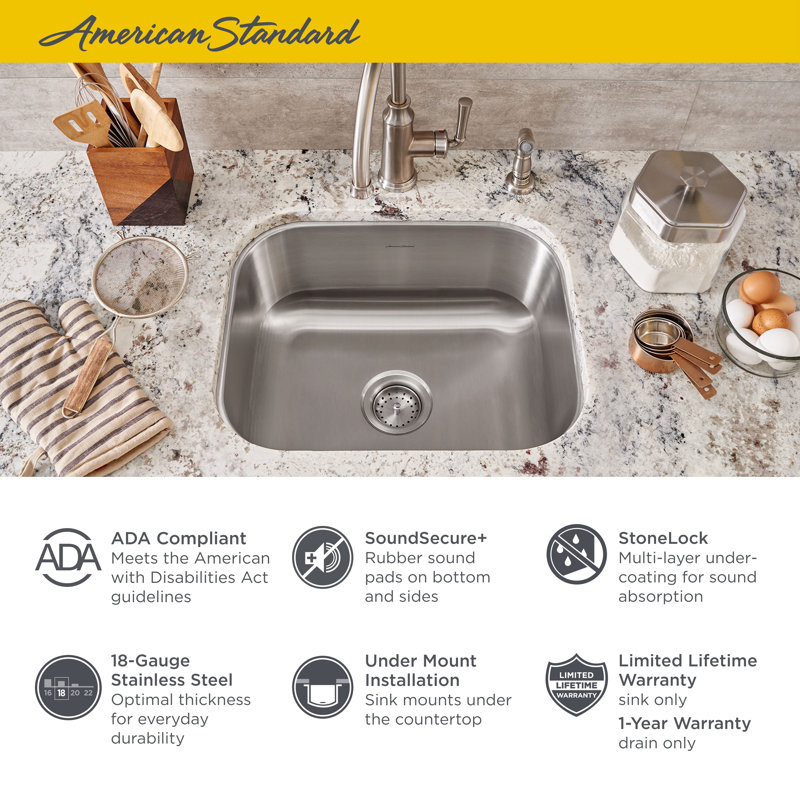 American Standard Portsmouth Undermount 23 Stainless Steel Single