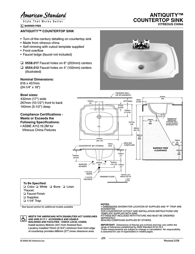 American Standard Antiquity Countertop Sink 0558 017 User S Manual