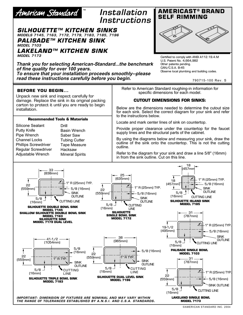 Https Www Manualshelf Com Manual American Standard Chandler Americast 7162 Kitchen Sink Installation Instructions Html