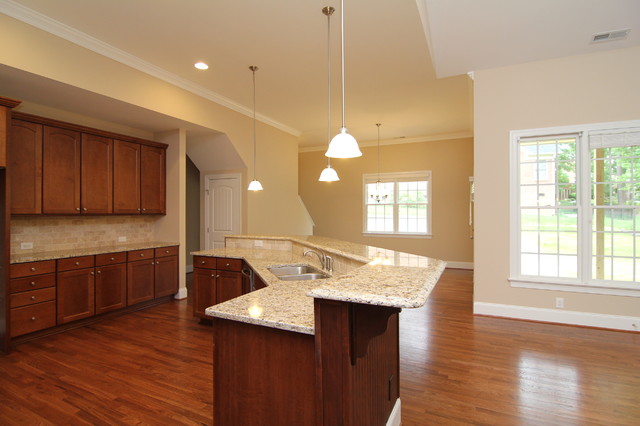 Angled Island Layout Traditional Kitchen Raleigh By