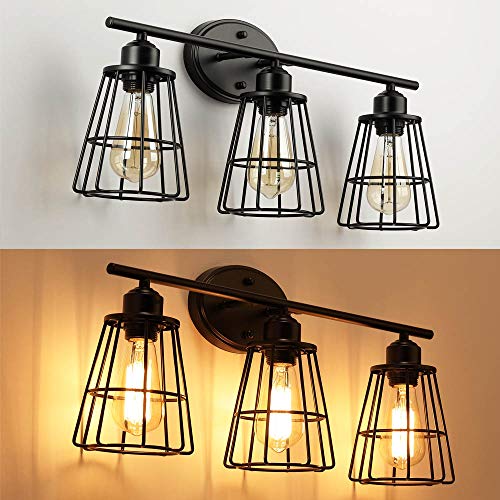 Black Vanity Light Industrial Bathroom 3 Lights Retro Cage Wall