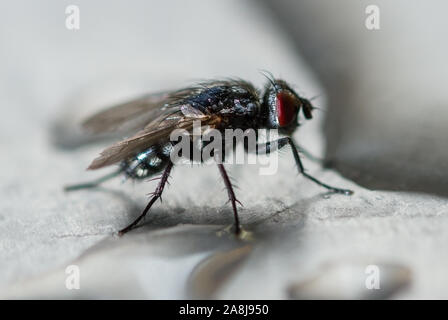Fly Is Drinking From Puddle Of Water On Metal Surface A Kitchen