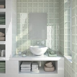 Glass tile will brighten a room with its reflective surface opening up your bathroom or kitchen space. Bathroom floor tile rejuvenate a powder room or bathroom suite with the beauty and durability of ceramic and porcelain floor tile. The glass shower door further helps to create a more fully open and airy space.